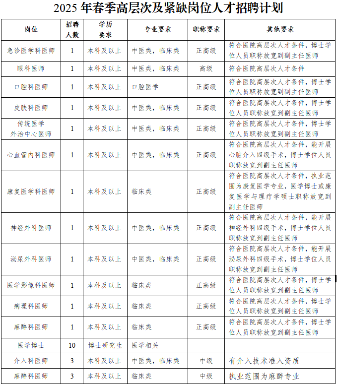 本著按需招聘,貫徹“公開、平等、競爭、擇優(yōu)”原則,現(xiàn)將2025年春季高層次及緊缺崗位人才招聘有關(guān)事項(xiàng)公告如下: