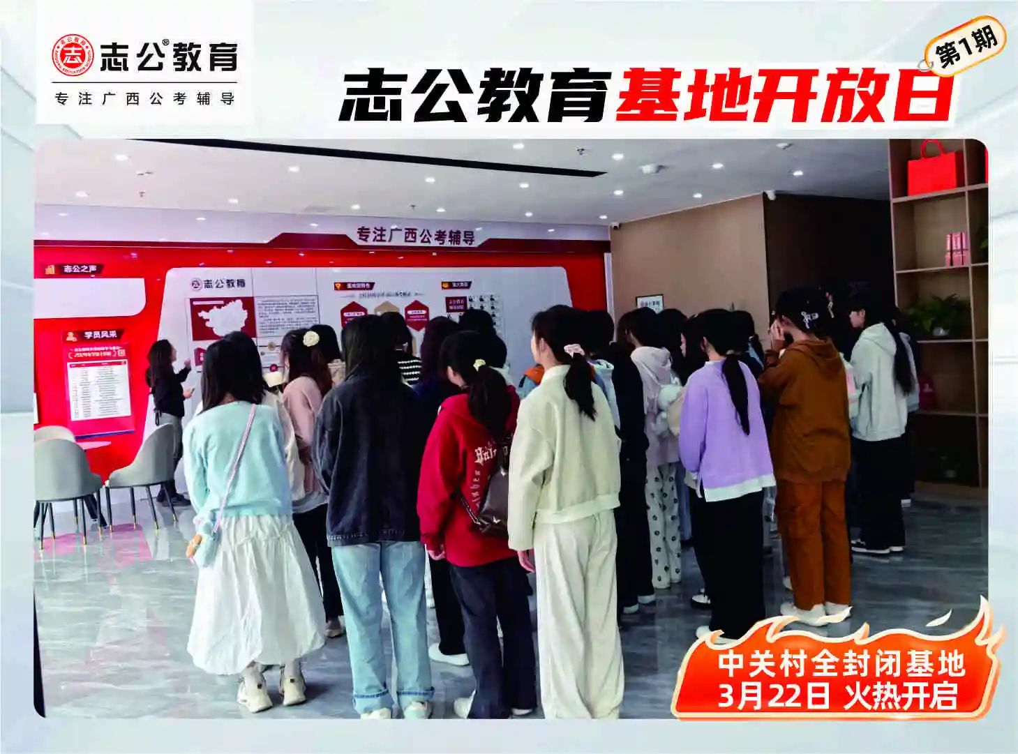 志公教育(中關(guān)村)全封閉基地于2024年12月16日正式開業(yè),總面積達(dá)十萬平方空間,是廣西ZUI大的全封閉公考學(xué)習(xí)基地。這里擁有全新升級(jí)的場(chǎng)地,空間布局合理,教學(xué)設(shè)施完備。寬敞明亮的教室,為學(xué)員提供舒適的學(xué)習(xí)環(huán)境;功能齊全的自習(xí)室,滿足學(xué)員隨時(shí)沉浸學(xué)習(xí)的需求。