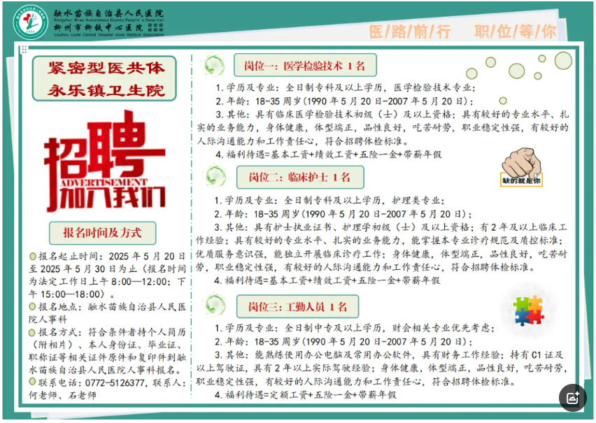 2025年廣西柳州緊密型醫共體永樂鎮衛生院招聘3人