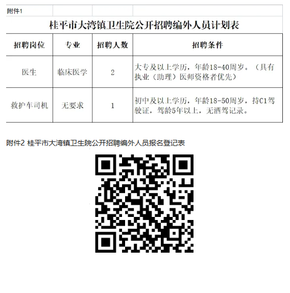 附件:1.桂平市大灣鎮(zhèn)衛(wèi)生院公開(kāi)招聘編外工作人員計(jì)劃表