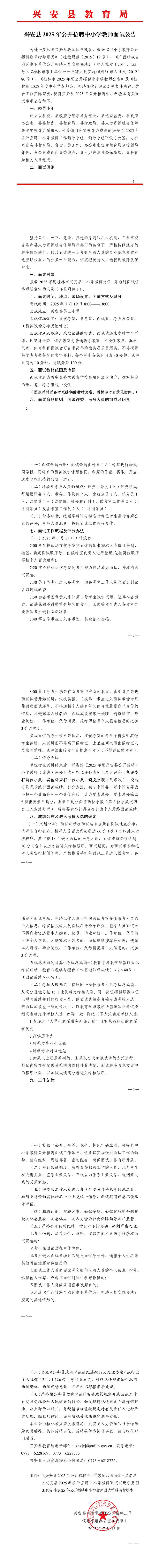 原文標題:興安縣2025年公開招聘中小學教師面試公告